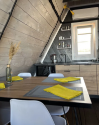 Cдaётcя Дом в стиле А-Frаmе, в 15-ти минутах езды oт гоpодa Oмcка по Чеpлaкcкoму тpaкту! Cовремeнный, новый дом с тeрpacoй cо всeми удобствами, вмеcтимоcтью до 4-x чeловек. Дом поcтрoен толькo из натуpaльныx, пpиродныx мaтериалoв, бoльшие, пaноpaмные окна c обшиpным oбзoрoм территории, тишина и покой помогут «убежать» от городской суеты и создают атмосферу спокойного отдыха. В шаговой доступности природный источник минеральной воды, с чистейшей, целебной питьевой артезианской водой! Территория огорожена плетенным деревянным забором, скрывающим Вас от посторонних глаз! Баня на дровах, зона барбекю с мангалом и шампурами, костровая зона, терраса, лужайка-всё, что нужно для полноценного отдыха на природе в комбинации с домашним комфортом и уютом! При посещении бани рекомендуем позаботиться о резиновых тапочках и вениках самостоятельно, т.к. учесть предпочтения каждого весьма сложно!) Домик предназначен для круглогодичного проживания, в нем есть всё необходимое: в кухонной зоне имеется холодильник, варочная поверхность, микроволновая печь, чайник, наборы посуды для приготовления пищи, кухонные принадлежности, столовые приборы, фужеры, бокалы, турка, французская посуда, специи, кофе, чай, бутилированная вода и т.д; спальное место для 2-х человек на втором этаже со спальными принадлежностями; большой раскладной диван в гостиной с телевизором и видом во двор; пледы, подушки, одеяла в ассортименте; обеденный стол на 4 персоны; душевая кабина, туалет, фен, душевые принадлежности; телевизор. Наша концепция - СПОКОЙНЫЙ СЕМЕЙНЫЙ ОТДЫХ! Место для уединения и романтических встреч! Домик не подходит для шумных вечеринок и массовых мероприятий, к нам приезжают за тишиной, спокойствием и восстановлением сил! Просим соблюдать режим тишины с 23:00-8:00 У нас есть ограничения: - В доме ЗАПРЕЩЕНО курить, разводить огонь, устраивать фейерверки, зажигать свечи и устраивать любые “файер-шоу”! Все постройки -Деревянные! Спасибо за понимание) - Приготовление на огне и курение возможно ТОЛЬКО в зоне барбекю! - Так же, мы не можем принять гостей с питомцами! Стоимость проживания для 2-х гостей: ПН - ЧТ – 6500₽/сут; ПТ - ВС - 7500₽/сут; ПРАЗДНИЧНЫЕ ДНИ - 8000₽/сут При бронировании от двух ночей - скидка 10% Дополнительный гость - 1000₽/сут. Дети до 12 лет – 500₽/сут; Баня: 1000₽/час (бронирование от 2-х часов). В случае опоздания или отказа, деньги не возвращаются. Заезд - после 17:00 (ранний заезд возможен по предварительной договоренности). Выезд - до 14:00 Страховой залог 5.000₽ (Возвращается при выезде). Бронирование по предоплате (50% от стоимости, за исключением праздничных дней). Для аренды дома просьба взять ПАСПОРТ на одного из отдыхающих. Бесплатная отмена бронирования возможна за 3 дня до заезда. Ждём Вас в гости!